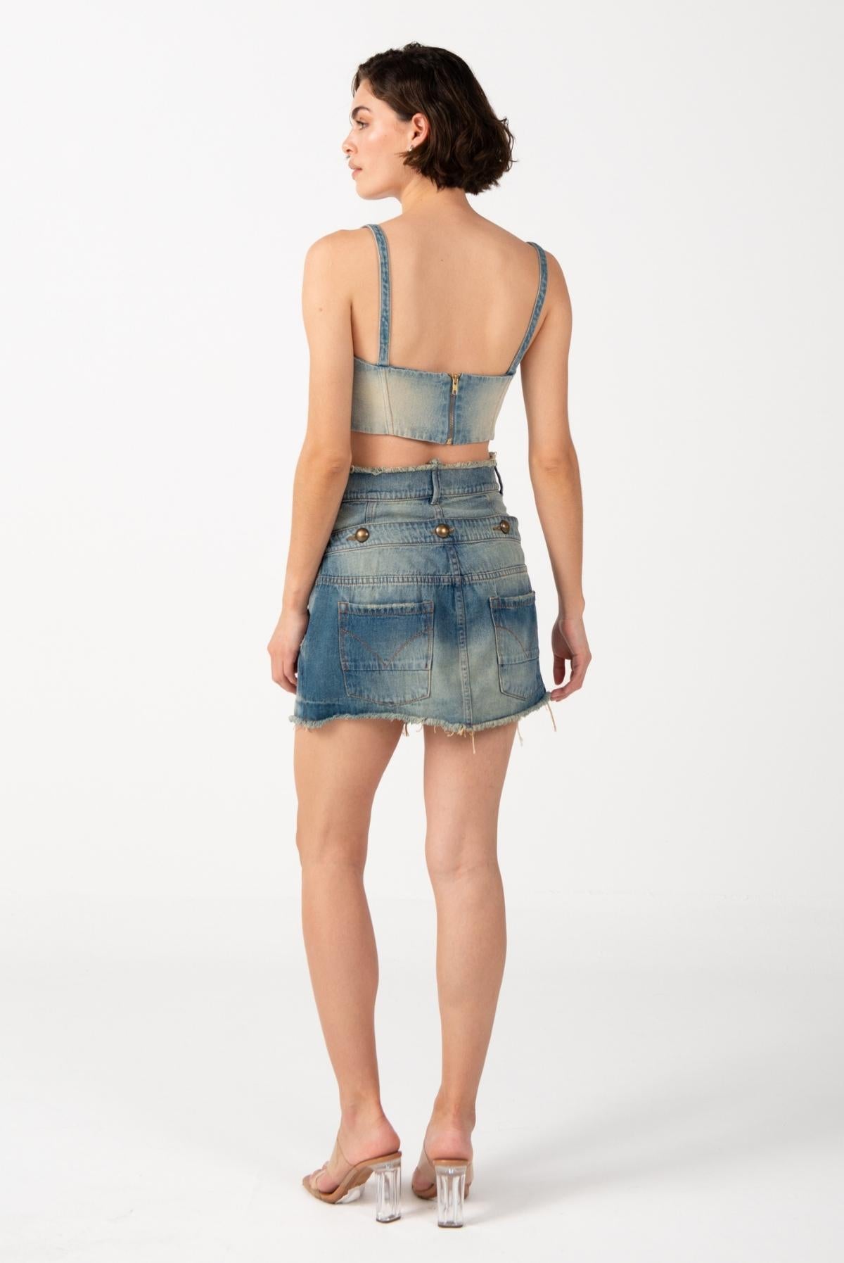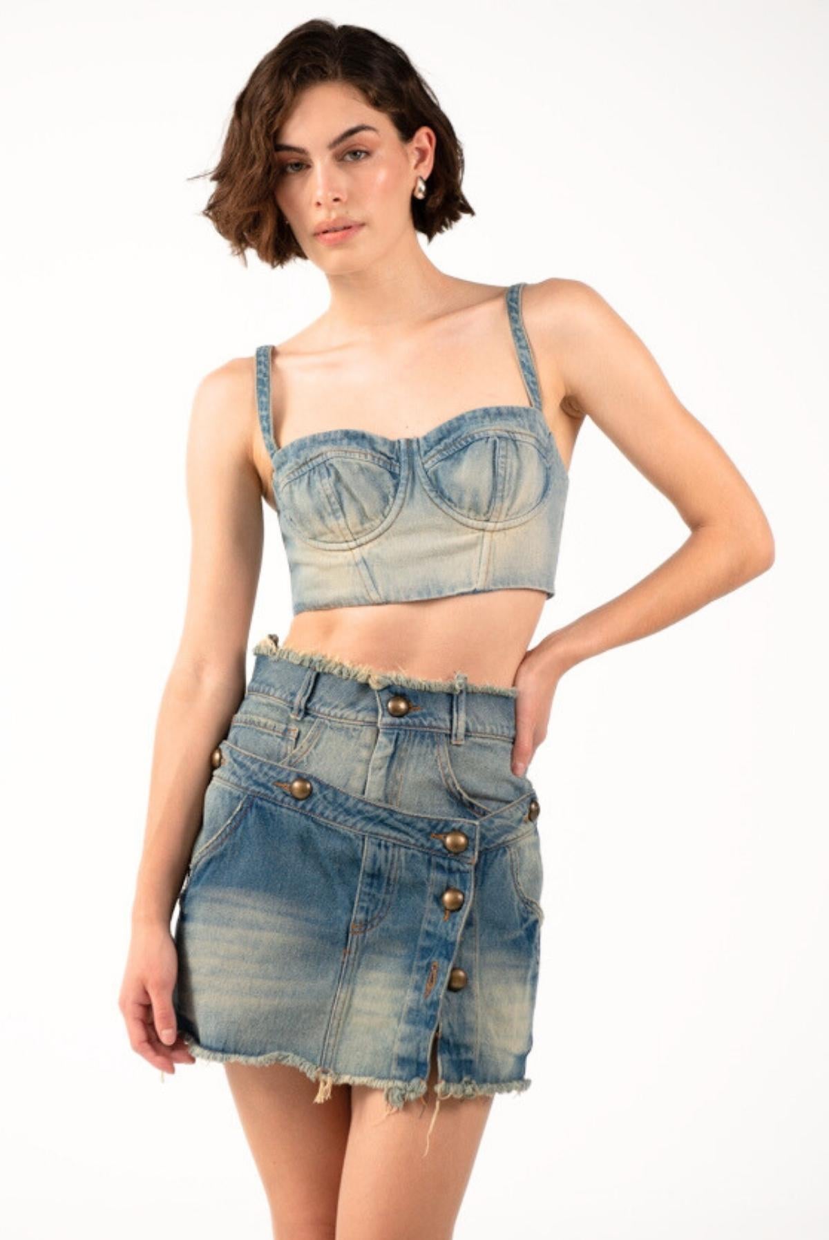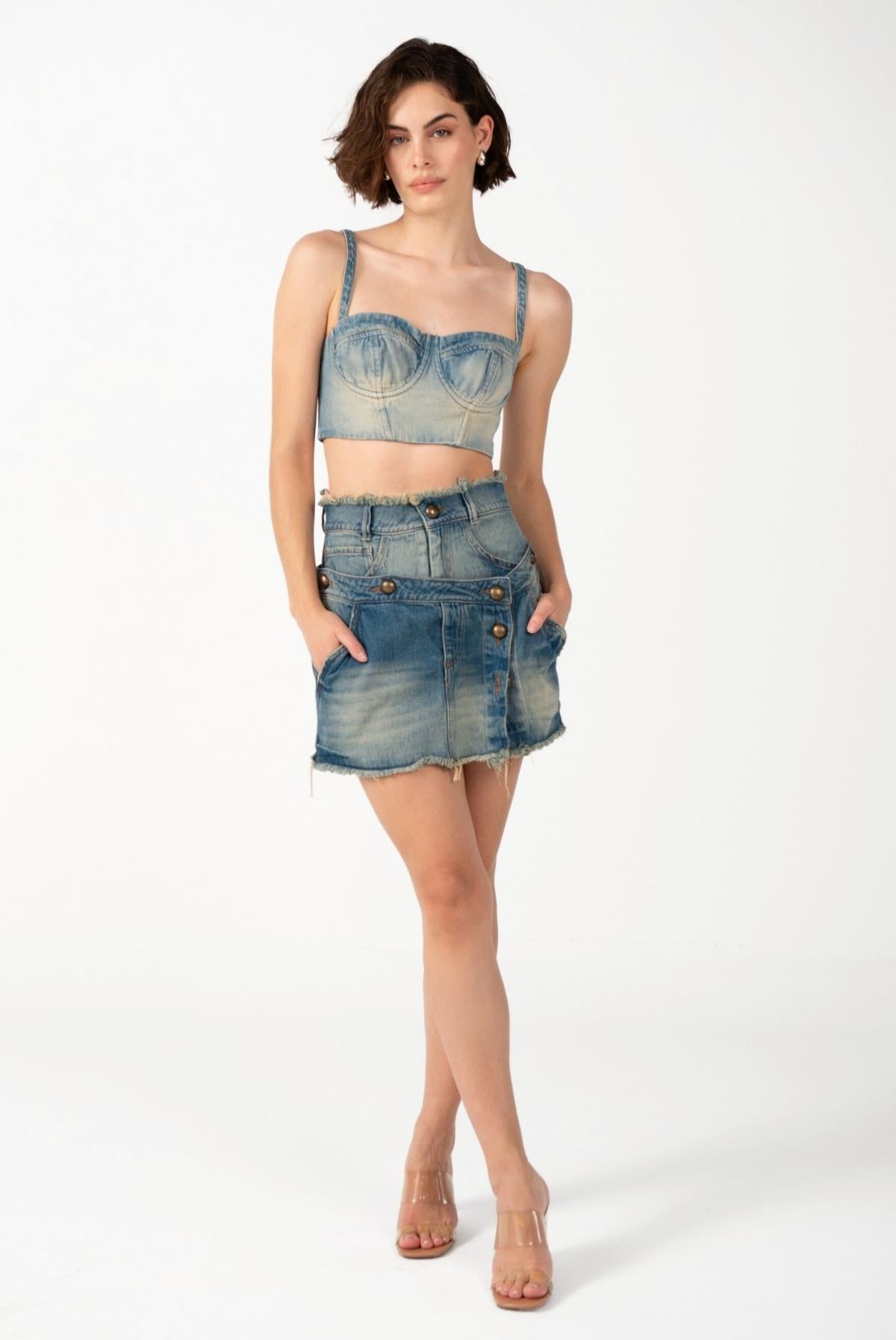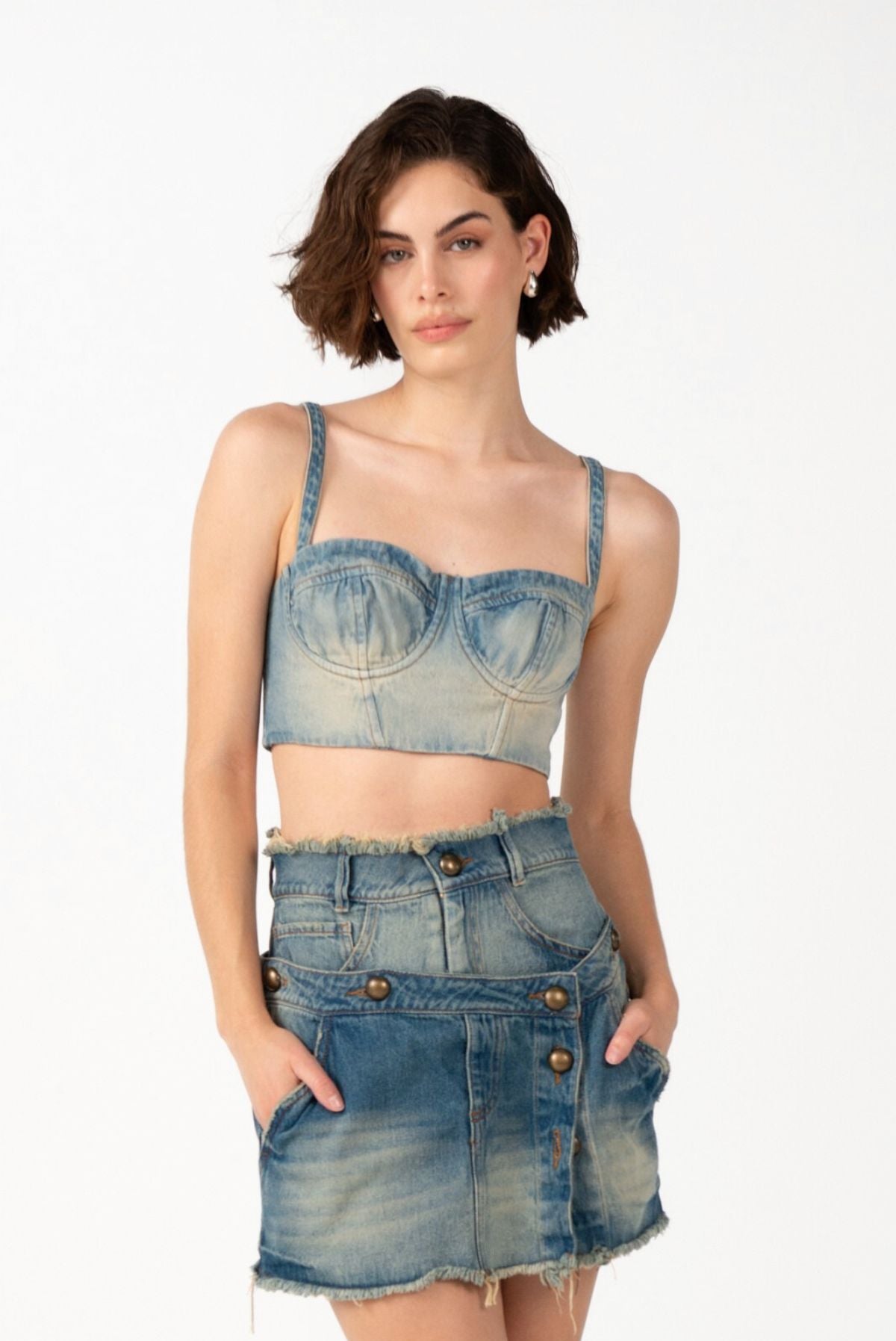 Esta pieza, confeccionada en índigo premium comfort, incorpora una estructura interna tipo corsé que aporta soporte y definición a la silueta. Su acabado relajado y textura suave la convierten en una prenda versátil, ideal para el día a día, con un equilibrio perfecto entre confort, estilo y actitud juvenil.