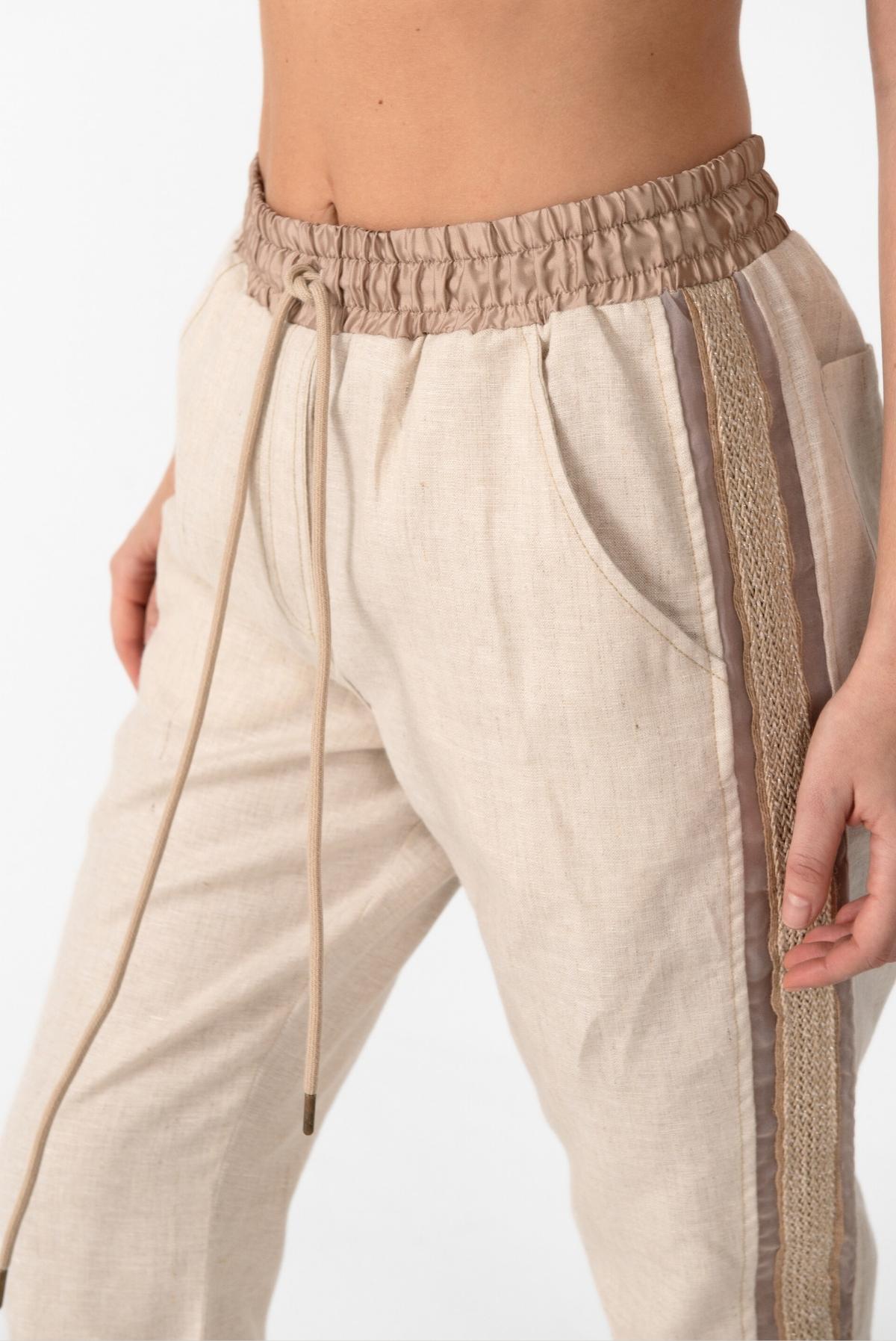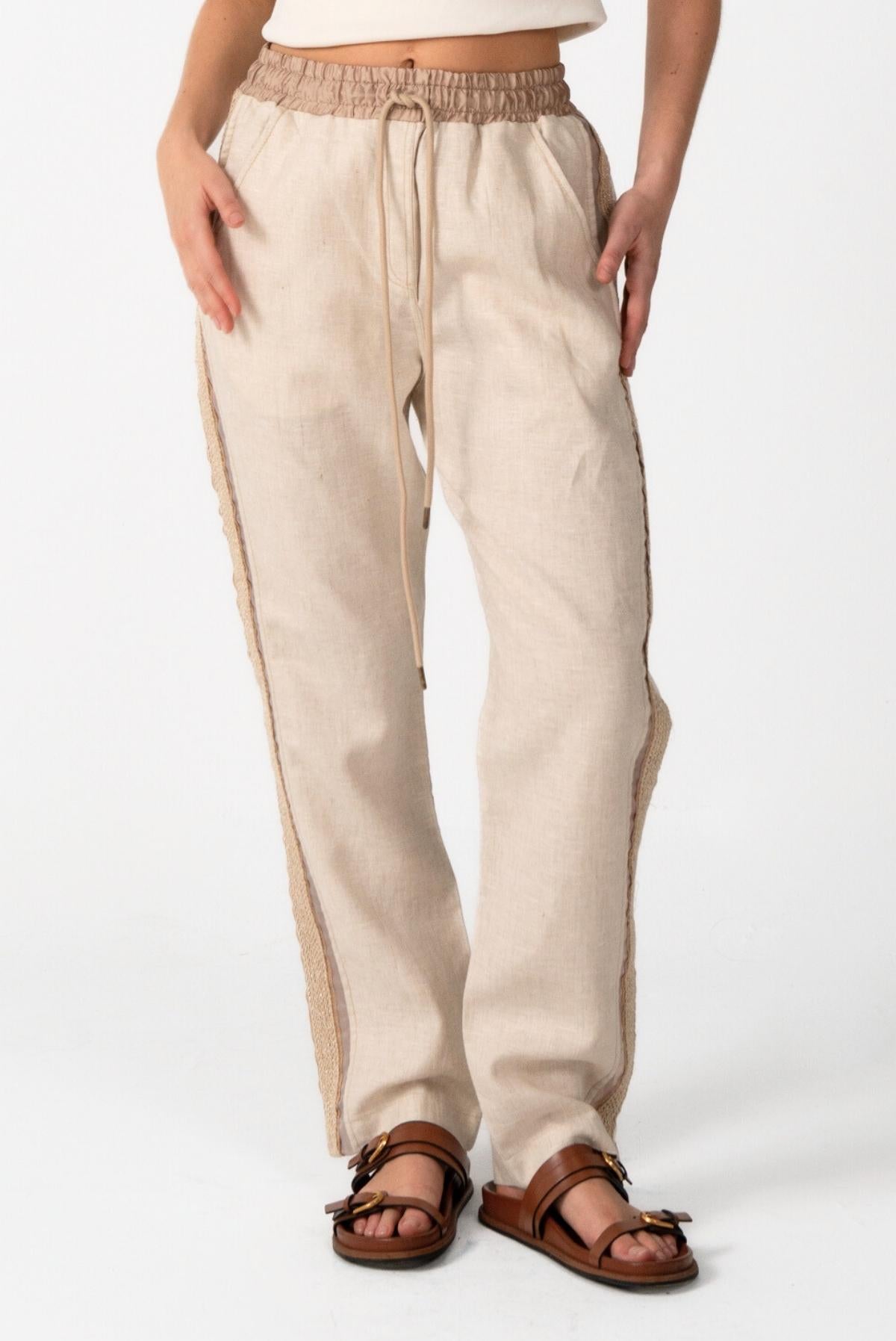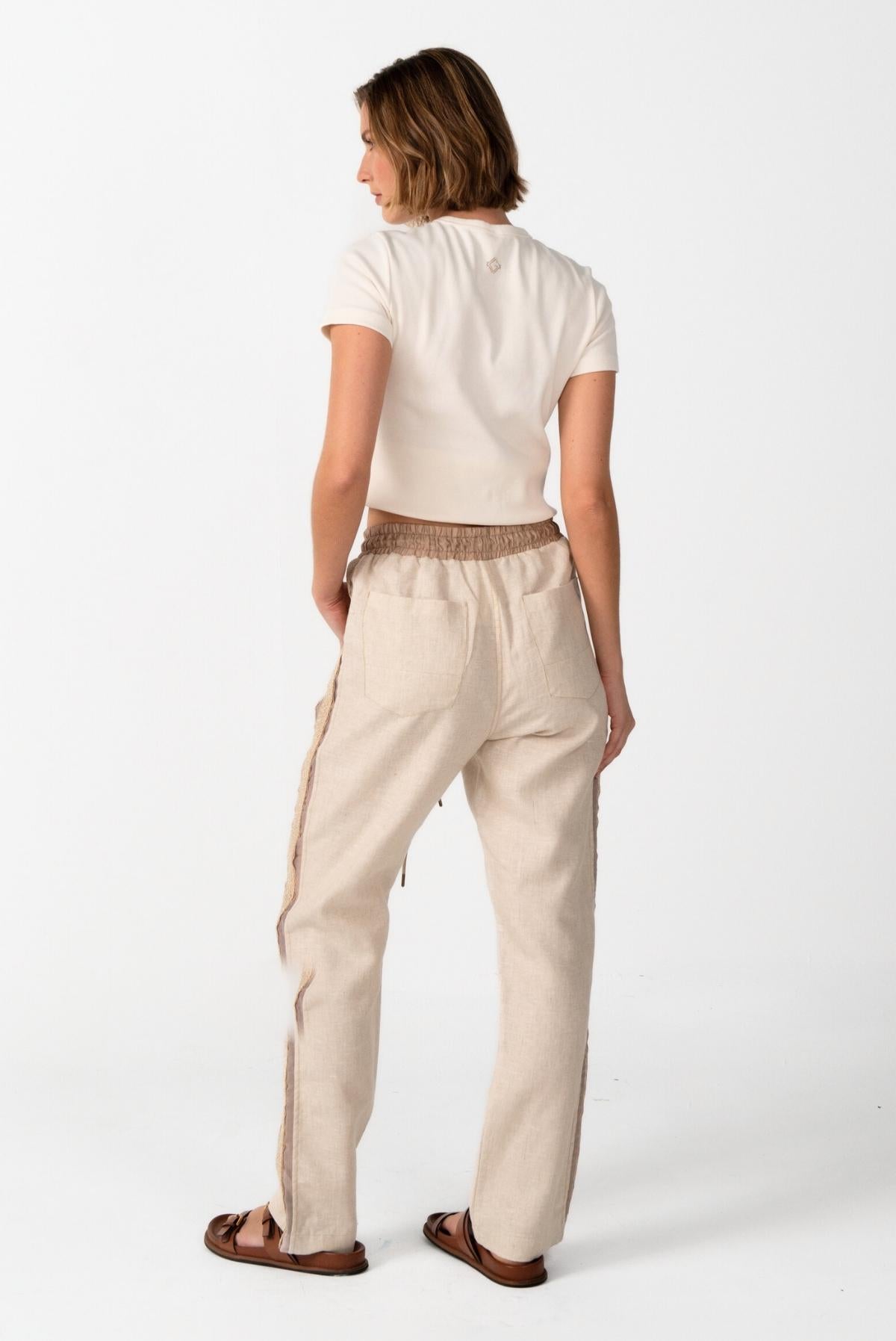 Esta pieza está confeccionada en lino, ofreciendo frescura y comodidad. Su diseño combina una estructura de aire semi deportivo con costados en organza, creando un balance perfecto entre lo urbano y lo refinado. La fusión de estos materiales aporta un efecto sutilmente translúcido que realza la silueta con un toque moderno y sofisticado.